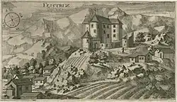 In the 12th century a fortress was erected at the site of a prehistoric settlement on a hill east of the town centre, when the area was part of the Imperial March of Carniola. The castle later was held by the Counts of Duino, from the 14th century onwards by the princely House of Auersperg in Postojna. The settlement of Ilirska Bistrica itself was first mentioned about 1300; its advantageous location, the surrounding karst springs and extended forests promoted the economic development of numerous sawmills and a flourishing timber trade from the early 15th century onwards. Located in the Duchy of Carniola the town for centuries was part of the Habsburg monarchy. In the 19th century, it was part of the Inner Carniola Kreis. The Ilirska Bistrica wood merchants mainly supplied the Austrian seaports of Trieste and Rijeka. In 1873 a railway line was opened by the Austrian Southern Railway company, running from Pivka and the Southern Railway line via the Ilirska Bistrica railway station to the coastal cities of Opatija and Rijeka.