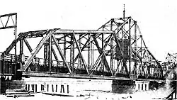 The Illinois Central Missouri River Bridge, also known as the IC Bridge or the East Omaha Bridge, is a rail through truss double swing bridge across the Missouri River connecting Council Bluffs, Iowa, with Omaha, Nebraska. It is owned by the Canadian National Railway and is closed to all traffic. At 521 feet long, the second version of the bridge was the longest swing bridge in the world from when it was completed in 1903 through 1915.[2] In 1975 it was regarded as the third longest swing bridge.[3]