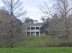 Near the turn of the 20th century, Hogg's father began speculating in oil. He purchased 4,100 acres (17 km2) of land near West Columbia in 1901, land that had been part of the Varner plantation.[41] After two years of study in New York City, Ima Hogg returned to Texas, dividing her time between the plantation and Houston, where her father had a law practice.[42] Under her supervision, the house was later remodeled and a portico was added to what had been the back of the house; she made this the new front entrance, orienting the house away from Varner Creek.[43]