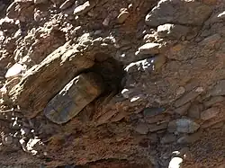 The type of imbrication is generally related to paleoflow direction.[4] Wadell[5] found the long axis aligned with paleocurrent, and dipping basinward in glacial sediments, whereas deltaic gravels may be oppositely inclined.[6]