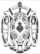 The escudo or escutcheon has five (5) major elements. The "base" represents God's omnipotent power and grace protecting or shielding Mary from original sin– represented by the monogram "M". The "Flaming Heart" represents Mary's loving and maternal concern for the seminarians and professors of the seminary. It is surrounded by "Twelve Stars" -- adapted from her appearance to St. Bernadette of Lourdes in France telling her that "I am the Immaculate Conception," hence the title, Immaculate Heart of Mary, is adopted. Over the "escudo" is an open book representing the search for knowledge by the seminarians through diligent studies. It is highlighted by the "Burning Torch" representing the "lumen Christi," or the light of Christ, which is always given to those who earnestly seek for knowledge and truth.