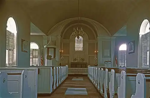 The church gradually fell into disrepair after the American Revolution. In 1820, Philadelphia architect William Strickland undertook a major renovation and expansion of the building which included a new transept, bell tower, steeple, roof, and interior. The interior was remodeled in the 1850s in the Victorian style, and again around 1900 in the Colonial Revival style.[3]