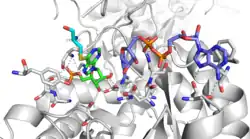 - ^ Gan L, Seyedsayamdost MR, Shuto S, Matsuda A, Petsko GA, Hedstrom L (February 2003). "The immunosuppressive agent mizoribine monophosphate forms a transition state analogue complex with inosine monophosphate dehydrogenase". Biochemistry. 42 (4): 857–63. doi:10.1021/bi0271401. PMID 12549902.