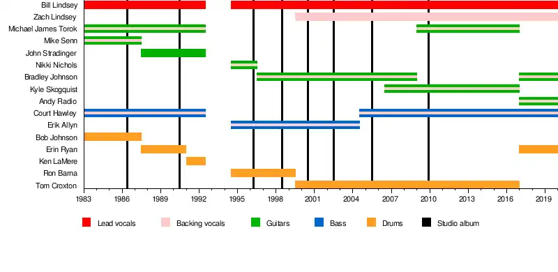 | Past members | Mike Senn Meaty" Robert Johnson John Stradinger Tom Croxton Ken LaMere Erik Allyn (Mitchell) Nikki Nichols (David O'Steen) Ron Barna Michael James Torok |
