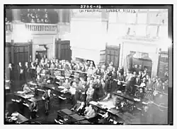 Beginning in the 1980s with Harry E. Claiborne, the Senate began using "Impeachment Trial Committees" pursuant to Senate Rule XI.[15] These committees presided over the evidentiary phase of the trials, hearing the evidence and supervising the examination and cross-examination of witnesses. The committees would then compile the evidentiary record and present it to the Senate; all senators would then have the opportunity to review the evidence before the chamber voted to convict or acquit. The purpose of the committees was to streamline impeachment trials, which otherwise would have taken up a great deal of the chamber's time. Defendants challenged the use of these committees, claiming them to be a violation of their fair trial rights as this did not meet the constitutional requirement for their cases to be "tried by the Senate". Several impeached judges, including District Court Judge Walter Nixon, sought court intervention in their impeachment proceedings on these grounds. In Nixon v. United States (1993),[18] the Supreme Court determined that the federal judiciary could not review such proceedings, as matters related to impeachment trials are political questions and could not be resolved in the courts.[19]
