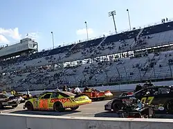 The first impound races in NASCAR were implemented during the 2005 season. The concept of the impound race was designed to limit the costs of racing, and thus make it more affordable for all teams. This was to have the effect of leveling the playing field between the small limited budget teams and well financed multi-car teams. Initially these new rules were confusing, limited schedules, and made the events hectic for the teams. Over time NASCAR adjusted, tweaked, and changed the rules so they were less imposing.[1] In 2005 a total of 21 out of the scheduled 36 races were run as impound races. The NASCAR series (Nextel at that time) director John Darby said "Ultimately, all the teams will arrive at the track with a focus on one goal," ... "That goal will be to have the best possible race setup, and hopefully that will enhance the overall competitive element throughout the field." The displeasure of the drivers, owners, and team members forced NASCAR to back pedal from 21 impound races in 2005, to a total of 5 races in 2006.[2]