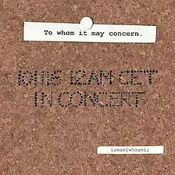 In Concert (stylised in all caps) is the first live audiovisual performance installation by Swedish audiovisual project iamamiwhoami, and also their first full-length release. The performance video was streamed on the website of the project's independent label, To whom it may concern., on 16 November 2010, and released as a digital album on 4 December, the same year, the project's one-year anniversary. For the project's seven-year anniversary, in 2016,[1] the film was made available for download and streaming,[2] and released on DVD on 17 April 2017.[3]