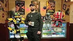 The ICWXP YouTube channel was mainly used for advertising of DVDs and fan interaction until 2015 when Let's Plays featuring the ICWXP characters launched as "Let's Riffs" under the title "Incognito Gaming Warriors XP".[7] The first of these to be uploaded to the channel was a 10 part play-through of Resident Evil HD Remaster. These "Let's Riffs" are done in the same silhouetted style as their DVD series, and range from 35 to 90 minutes. They have had a collaboration with James Rolfe (AVGN) where they riffed a game trailer for Super Mario Odyssey.[8] They have covered many games in this series, including Resident Evil HD Remaster, Hitman, and Fallout 4. They also had a short-lived Let's Riff series called Playing with Myself where Rikk would play Mega Man, Monster Party, and Demon Quest with a clone of himself named Rock. In May 2017 IGWXP starting doing a series on Resident Evil 7: Biohazard that consisted of 90-minute episodes with host segments that pertain to the Resident Evil franchise.[9] Rikk Wolf has stated in a DVD commentary for Episode 205 that he has grown to prefer the riffing style of IGWXP over ICWXP because they can interact with the material better with a game rather than a movie. In October 2017, Agonywolf Media held a poll to name a new YouTube channel they intended to launch that would continue the game-riffing style of IGWXP but adopt face cams instead of silhouettes to help distance themselves from MST3K.[10] Robot Co-Op was the winning poll option, and the Agonywolf Media crew began uploading episodes on the new Robot Co-Op YouTube channel.