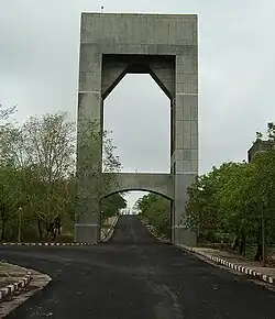 The institute's buildings are designed by Anant Raje. The architecture of the campus is inspired by the historical town of Mandu.