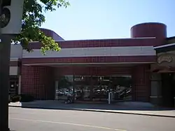 Indian Mound Mall opened its doors on October 23, 1986, becoming the second[2] indoor shopping mall in Licking County. The mall's first logo consisted of a circle with lines, and a feather that represents the native American Indian, which has "Indian Mound Mall" written on it. The original anchor stores consisted of the following: Elder-Beerman, JCPenney, Lazarus, and Hills. Crown Cinema was added to the rear of the mall in 1988.[3] A fountain was originally located in the center of the mall from 1986 to 1997. The same year the fountain was removed, the mall added Sears to replace a freestanding store nearby, and the Crown Theaters expanded from six screens to eleven screens, which became a Hollywood Theater. In 2016, AMC Theatres bought the Hollywood Theater.[4] In 1998, Elder-Beerman was expanded, and later closed on August 26, 2018, adding 20,000 square feet (1,900 m2).[5]