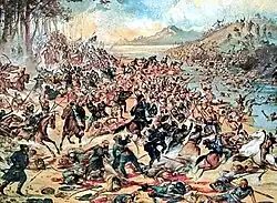 The Marathas were cut off from all supplies as a result, and a last desperate attempt for peace was sent by Sadashivrao, even agreeing on any term Ahmad Shah deemed fit. Najib ud-Daula shut down the idea and Ahmad Shah rejected peace.[142] As starvation gripped the Maratha camp, Sadashivrao concluded with his cabinet of war on 13 January to attack the Afghans. On 14 January, the Maratha forces assembled and began marching on the Afghan camp.[143][144] The numbers of the battle vary by source. Mehta presents the Afghans at having 79,800 men, and the Marathas 85,000, with numerous non-combatants. The Afghans had a gradual flow of manpower stream into the army while the Marathas did not, making it definite that the Marathas were far outnumbered at the battle.[145]