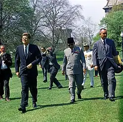 The U.S. under President John F. Kennedy intervened in the West New Guinea dispute between Indonesia and the Netherlands, due to Indonesia's purchase of Soviet arms and planned invasion of the territory. U.S. diplomat Ellsworth Bunker brokered the New York Agreement, which eventually ceded West New Guinea to Indonesia in 1969 after a controversial referendum.[12] The administration of Lyndon B. Johnson escalated the war in Vietnam, which greatly heightened tensions with Indonesia in 1964–65. Relations deteriorated further with Indonesia's opposition to the formation of Malaysia that led to war. By mid-1965, Sukarno was edging closer to China, denounced U.S. imperialism, and inspired anti-American demonstrations. Following an attempted coup on September 30, 1965, and the ensuing massacres of communists, the pro-Western Suharto came to power in 1968, and the U.S. started providing financial and military aid to Indonesia.[13][14]
