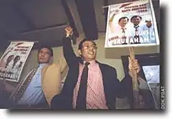 Whilst the party was formed early on, Bintang emphasised that PUDI did not want to participate, register with the Ministry of Home Affairs, nor recognize the 1997 legislative elections and the reelection of Suharto.[25] After Suharto's Fall, The party participated in the 1999 legislative election with serial ballot number 36.[1] The party received 140,980 votes or 0.13% of the total votes. The party did not win any seats in the House of Representatives.[26][27]