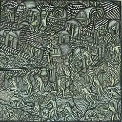 Indonesian painting has a very long tradition and history in Indonesian art, though because of the climatic conditions very few early examples survive, Indonesia is home to some of the oldest paintings in the world. The earliest Indonesian paintings were the rock paintings of prehistoric times, such as the petroglyphs found in places like in the caves in the district of Maros in Sulawesi, Indonesia. The Stone Age rock paintings found in Maros Cave are approximately 40,000 years old and are listed as one of the oldest paintings in the world.