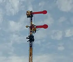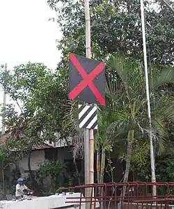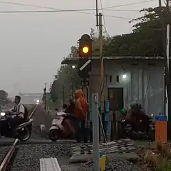 The Tebeng signaling device was the first railway signaling equipment used on Staatsspoorwegen lines since it first operated in 1878. The Krian signaling device (Dutch: Krianinrichting) was a development of the Tebeng signal, which used a tall tower equipped with locking equipment. The name of this signaling equipment is attributed to Krian Station, a railway station in Sidoarjo Regency, which was also the first station to use the signaling.[5] The last railway line to use the Krian signal was the Kalisat–Panarukan railway line, which was closed in 2004.[6] It is recorded that the Krian signal has been preserved at Krian Station, Tamanan Station,[7][6] Ambarawa Railway Museum,[8][9] and Garut Station.[10]
