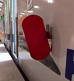Signature 41 signals that the train is cleared to depart. Signature 41 is responded to by the engineer's signal 35. This practice is not applied to train services that are not equipped with conventional conductors such as KAI Bandara[3] or Commuter Line. The system was replaced with show-call signal 40 carried out by train service officers (customer service).[4] | |