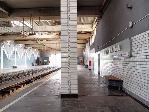 Insdustrialna (Ukrainian: Iндустрiальна; Russian: Индустриальная, romanized: Industrialnaya) is a station on the Kryvyi Rih Metrotram. It was opened on 25 October 1999 as the starting station on the third stage of the system.