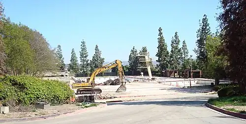 Prior to its current form, the site was a large refuse disposal site that accumulated some 3.5 million tons of waste from 1951 until 1969, characterized by "subterranean fires, pollution, exposed debris, unsightly cut slopes, and barren earth."[3] Extensive grading, contouring and landscaping transformed the site into a lush green-space development that serves as an attractive setting for the facilities located at the site. This successful adaptive reuse has been noted and followed by many other similar projects due to its innovative design, construction, landscaping and use of reclaimed water[8] and methane gas.[3] In 1981, the development was chosen by Civil Engineering Magazine as the Outstanding Civil Engineering Achievement of 1981.[4]