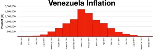 Hyperinflation in Venezuela was the currency instability in Venezuela that began in 2016 during the country's ongoing socioeconomic and political crisis.[3] Venezuela began experiencing continuous and uninterrupted inflation in 1983, with double-digit annual inflation rates. Inflation rates became the highest in the world by 2014 under Nicolás Maduro, and continued to increase in the following years, with inflation exceeding 1,000,000% by 2018. In comparison to previous hyperinflationary episodes, the ongoing hyperinflation crisis is more severe than those of Argentina, Bolivia, Brazil, Nicaragua, and Peru in the 1980s and 1990s, and that of Zimbabwe in the late-2000s.