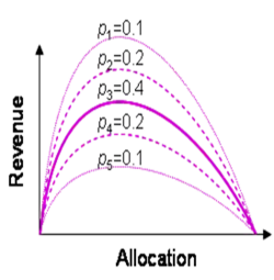 Now, for any allocation, one can construct a probability distribution of the revenue, based on his prior beliefs. The decision maker can then choose the allocation with the highest expected revenue, with the lowest probability for an unacceptable revenue, etc.