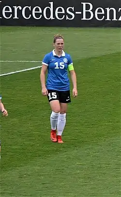 Inna Kiss-Zlidnis (born Inna Zlidnis; 18 April 1990) is an Estonian professional footballer who plays as a left-back for captains the Estonia women's national team.[1][2] On 29 November 2024, she made her 100th appearance.[3]