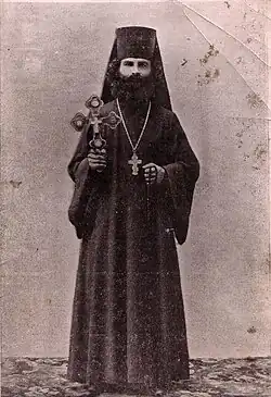 Levizor spent three years at the monastery, where he acted as a holy fool, pretending to be a madman in order to push the others toward spiritual awakening. According to his hagiography, the other monks disliked him and Levizor suffered from this, finding his comfort in the Holy Mother's supernatural visits. Despite his unpopularity among the monks, his superior Archimandrite Porfiri entrusted him with the keys of the monastery, a position from which he used to help those in need, including giving monastery property to the nuns of a nearby convent.[2] In 1897, Levizor left the monastery and wandered across the Russian Empire, moving from monastery to monastery, eventually returning to the Bessarabian Noul Neamț Monastery, founded by Romanian Orthodox monks from Neamț.[3] In 1899, the new Bishop of Kishinev, Yakov, became more open to the use of Romanian language in religious contexts. This allowed the creation of a Moldavian monastery in Balta (now in Ukraine) dedicated to Feodosie Levitzky, a priest known for his philanthropic activities. It was here that Levizor took the monastic name Inochenție.[4]