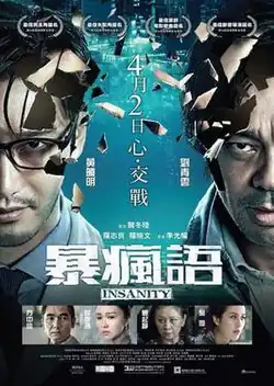 Insanity (Chinese: 暴瘋語) is a 2015 psychological thriller film directed by David Lee and starring Sean Lau and Huang Xiaoming. A Hong Kong-Chinese co-production, it was released on April 2, 2015 in Hong Kong and a day later in China on April 3, 2015.[1][2]