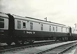 The first sleeping car train on the Great Western Railway was introduced at the end of 1877 from London Paddington to Plymouth. This had 7 ft (2,134 mm) broad gauge carriages with two dormitories, one with seven gentlemen's berths and the other with four ladies' berths. These were later replaced in 1881 by new carriages with six individual compartments.[1] An additional service was soon added from London to Penzance which eventually became known as the Night Riviera. Under BR sleeping cars were limited to just the Penzance service[2] After nationalisation there were two major investments in the sleeper fleet. The first occurred between 1957 and 1964 when 380 Mark 1 sleeping car carriages were built to replace the fleets inherited from the GWR, LMS and LNER. The Southern Railway didn't operate sleeper trains but did provide access to Compagnie International des Wagon Lits (CIWL) for their Night Ferry service from London to Paris via the Dover to Dunkerque train ferry. BR introduced the Inter-City brand for long haul passenger services in 1966.[3] This in turn put all sleepers under the Inter-city banner.