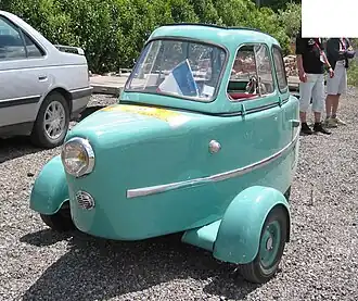 The Inter Autoscooter is a discontinued three-wheeled French microcar that debuted at the 1953 Paris Motor Show.[3][4] Between the two body types, the open-topped Torpedo and the close-topped Berline, only 300 were produced between 1954 and 1958.[4] As of 2017, only 30 are estimated to still exist.[5]