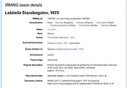 - ^ a b c "IRMNG - Interim Register of Marine and Nonmarine Genera". IRMNG. Retrieved 23 May 2019.