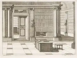 This type of scene first appears near the end of the 17th century. At that time, the intent was entirely descriptive. They were usually done specifically to show the contents of an art gallery, personal library or cabinet of curiosities. One of the first known examples depicts the library of Samuel Pepys in London, dating from 1693. They are still valued today by researchers and decorators. In the case of Pepys, it can be seen, firsthand, how a scholar of that time arranges his books in a bookcase (an innovation at that time), uses a lectern, places cushions for his comfort, hangs maps, etc.