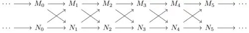 In topological data analysis, the interleaving distance is a measure of similarity between persistence modules, a common object of study in topological data analysis and persistent homology. The interleaving distance was first introduced by Frédéric Chazal et al. in 2009.[1] since then, it and its generalizations have been a central consideration in the study of applied algebraic topology and topological data analysis.[2][3][4][5][6]