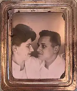 The company also produced arcade photo booths under the name of "Photomatic". These produced a souvenir 2-5/8" x 3-1/16" metal-framed photo with the credit on the back, "Taken by the Photomatic."