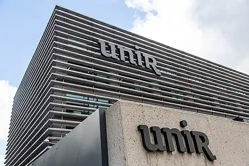The International University of La Rioja (Spanish: Universidad Internacional de La Rioja), commonly known as UNIR, is a private open university in Spain focused on online education, based in Logroño, La Rioja. Also has presence in Mexico, Colombia, Ecuador and Peru. In February 2025, the institution had more than 90,000 students from 86 countries.[1] UNIR offers in Spain, 55 university degrees, 155 official master's degrees, 83 proprietary degrees and advanced studies, and doctoral programmes. The university has four doctoral programs in its faculties of Education, Business and Communication, Law, Social Sciences and Humanities, and Health Sciences, as well as in its School of Engineering and Technology, its School of Languages and its Doctoral School.[2]