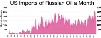 US imports of Russian oil by month before ban