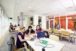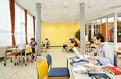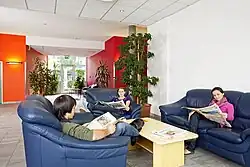 There are several rooms for leisure activities e.g. table-tennis, billiard, fitness rooms, four music rooms, a mediation room, TV-lounges and a party room.[1]