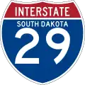 Interstate 29 (I-29) is a north–south Interstate Highway in the midwestern United States. In the state of South Dakota, I-29 traverses on the eastern side of the state from the Iowa border near Sioux City to the North Dakota border near New Effington. On its route, I-29 passes through western portions of Sioux Falls, the state's largest city. It travels 252.5 miles (406.4 km) in the state, the longest stretch of any of the four states through which it passes.[1] I-229, the highway's lone auxiliary route in South Dakota, serves as a bypass around southern and eastern Sioux Falls.