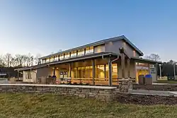 On February 1, 2018, NCDOT opened a new rest area located in the median of I-77, at milemarker 58. Construction of the 5,000-square-foot (460 m2) $15-million (equivalent to $18.9 million in 2023[24]) facility started in early 2015. With the opening of the facility, four older rest areas in Iredell and Yadkin counties, built in 1972–1973, were closed.[25]