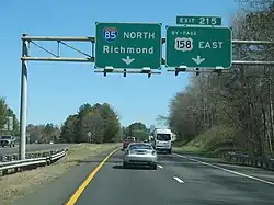 Interstate 85 (I-85) is a part of the Interstate Highway System that runs 666.05 miles (1,071.90 km) from Montgomery, Alabama, to Petersburg, Virginia. In the U.S. state of North Carolina, I-85 crosses the entire state from southwest to northeast (though is signed north–south), at the South Carolina state line near Grover to the Virginia state line near Wise. Running for over 231.23 miles (372.13 km), the segment of I-85 is the longest of the five states it passes through and the second-longest Interstate Highway in North Carolina after I-40.[1]