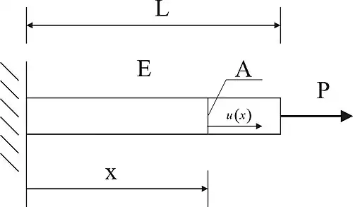In the tension-compression problem, the following equation shows the relationship between displacement u and force P: where L is length, A is the area of a cross-section, and E is Young's modulus.