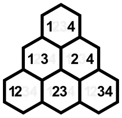 It can be seen that and always have the same digits, and that and are both related to the place-based inversion set. The nontrivial elements of are the sums of the descending diagonals of the shown triangle, and those of are the sums of the ascending diagonals. (Pairs in descending diagonals have the right components 2, 3, 4 in common, while pairs in ascending diagonals have the left components 1, 2, 3 in common.)