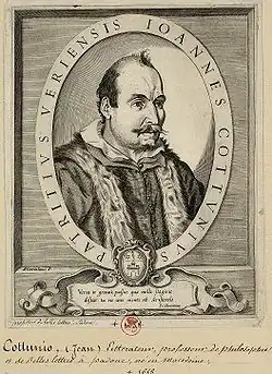 Johannes Cottunius, 1577 Vena – 1658 Padua; studied philosophy, theology and medicine; taught Greek (from 1617) and philosophy (from 1630) in Bologna