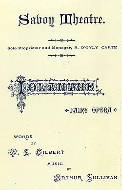 - ^ "The Savoy Theatre, Strand, WC2", ArthurLloyd.co.uk, retrieved 25 October 2018; and Davis, Carol E. "Sullivan: Iolanthe", Opera News, June 2014, Vol. 78, No. 12, retrieved 26 July 2015