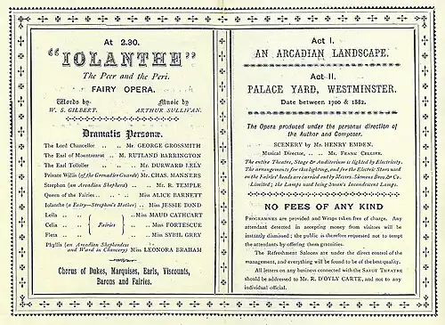 - Photos from D'Oyly Carte productions of Iolanthe, 1882 to 1980