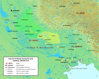 The Iraq theater was one of two major areas of operations during the Zanj Rebellion, the other being the neighboring province of al-Ahwaz.