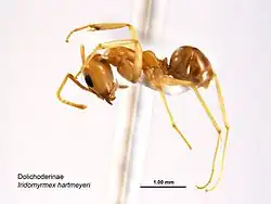 Iridomyrmex hartmeyeri is a species of ant in the genus Iridomyrmex. Described by Auguste-Henri Forel in 1907, the ant is a nocturnal forager, and it distributed in most of Australia.[1][2]