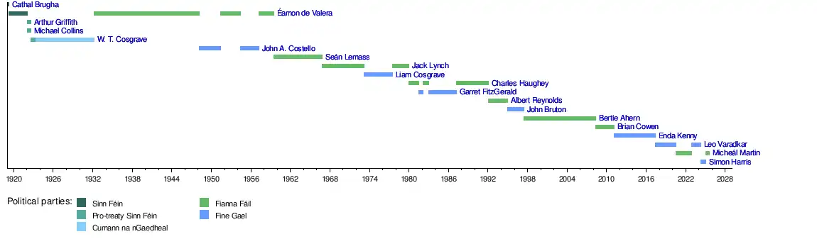 | Taoiseach | Tánaiste | Government | Ireland | Constitution of Ireland | 29 December 1937 – present |