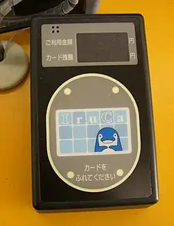 IruCa (イルカ, Iruka) is a rechargeable contactless smart card ticketing system for public transport introduced by Takamatsu-Kotohira Electric Railroad (Kotoden) in Takamatsu, Japan from February 2, 2005. The name comes from IC and iruka (dolphin or need), the latter being the mascot character of the company. The Dolphin character made 2002 and to cautionary lesson to employees used to be disliked by the locals by bad behavior of them at that time. "Iruka" was from someone said "Kotoden wa iruka, iranai ka?" or "Is the people need us, or not?", an employee meeting when soon after fail the company. Just like JR East's Suica or JR West's ICOCA, the card uses RFID technology developed by Sony corporation known as FeliCa. As of July 2006, 77,000 cards are issued.