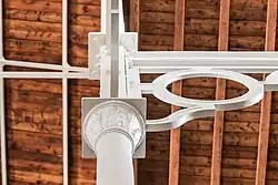 Is-Suq tal-Belt has a rectangular plan, and the walls and arches making up its three floors are built of limestone like many other buildings in Malta. However, the roof is made of cast and wrought iron decked in timber, and it is supported on cast iron columns and trusses.[8][11] This use of iron makes it an unusual structure,[12] and it was the first building in Malta to be constructed mostly of pre-fabricated iron.[11][7] Iron had been used in earlier structures on the island, such as the Naval Bakery and the Corradino Prisons, but on a much smaller scale than the Valletta Market.[7]
