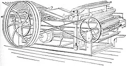 In 1828 he and [5] invented the Adams printing press, which he improved in 1834,[2] and it was introduced in 1830 as "Adams Power Press".[4] The machine "worked a revolution in the art of printing," and beginning in 1836, became the leading machine used in book printing for much of the nineteenth century, and was distributed worldwide. It substantially reduced the cost of book production, and made books more widely available.